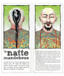 Le système de cartes permet de bousculer la chronologie, de comparer les coupes et de provoquer des rencontres improbables : philosophes Cyniques de l’Antiquité grecque et hippies, punks et guerriers Mohawks, Jeanne d’Arc et les «Garçonnes» du début du 20e siècle… Une véritable fresque historique vue à travers les coiffures !